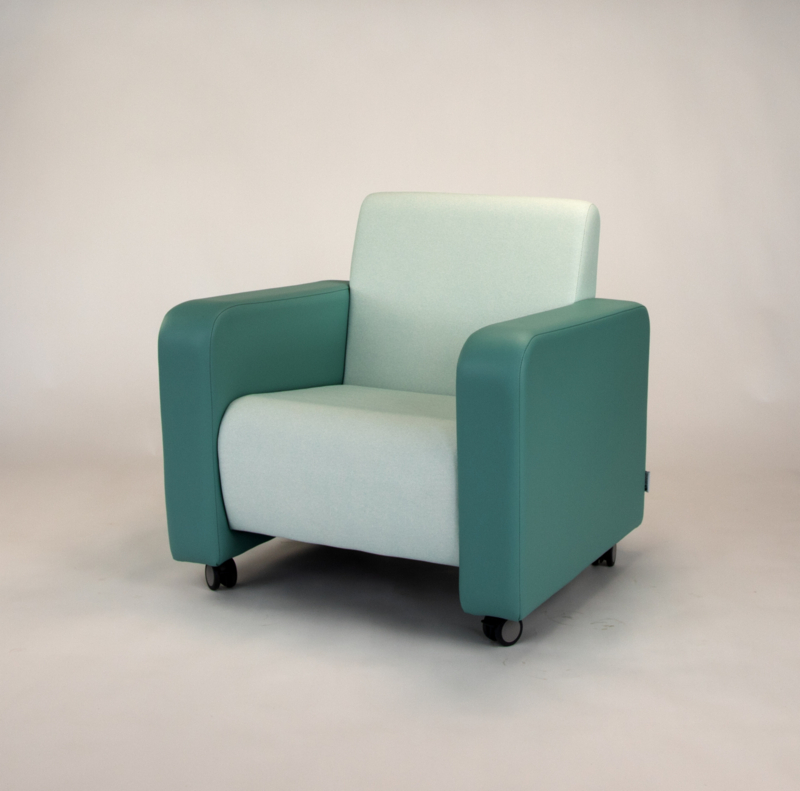 Uitvoering: Zetel, modern, uniek design. Kleurstelling naar wens. Standaard op dubbel geremde wielen.